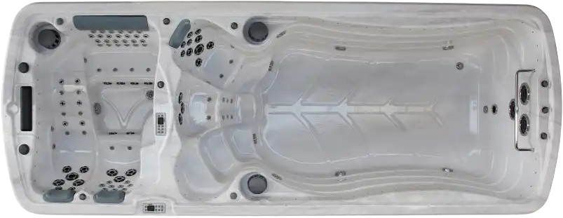 FONCTIONNALITÉS: Deux pannel, coté spa et coté piscine non liée,Jets de nage a contre courant, Habillage bois, Panneau de contrôle (programme différer chauffe eau, contrôle de la température, programme filtration, Sondes de sécurité sans eau) Lampe UV