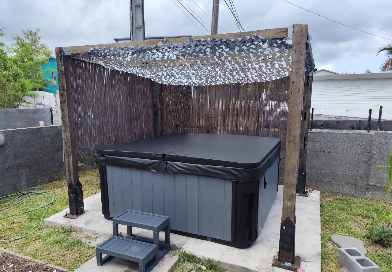 FONCTIONNALITÉS: Habillage bois, Panneau de contrôle (programme différer chauffe eau, contrôle de la température, programme filtration, Sondes de sécurité sans eau) Lampe UV